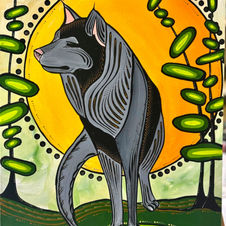 This striking Indigenous painting features a graceful fox poised in front of a glowing golden moon. Representing cleverness, adaptability, and quiet strength, the fox is beautifully rendered to reflect both its natural beauty and deep spiritual symbolism. A truly stunning piece that captures the spirit of the wild.